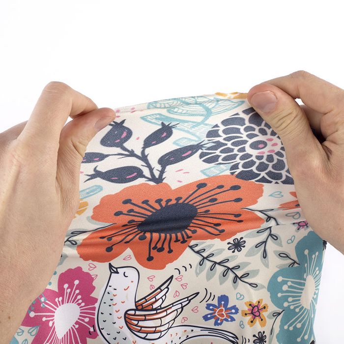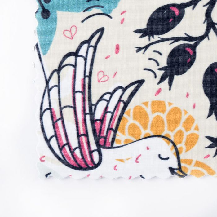 Deine Designs werden vor Ort in unserem Studio in die Tat umgesetzt. Alle Lyra-Stoffe werden mit Hilfe eines besonderen Verfahrens bedruckt: Durch dein Einfluss von Hitze verdampfen die Druckerfarben und verbinden sich mit den Stofffasern. Das Ergebnis ist langlebig, detailliert und farbenfroh. Da es sich bei Lycra um ein Gewebe mit hohem Stretch-Anteil handelt, kann es sein, dass deine Designs unterbrochen werden, wenn der Stoff stark gedehnt wird. Da Lycra jedoch äußerst formstabil ist, wird es immer wieder in seine Ausgangsform zurückspringen und auch den Druck in seiner ursprünglichen Form erhalten.