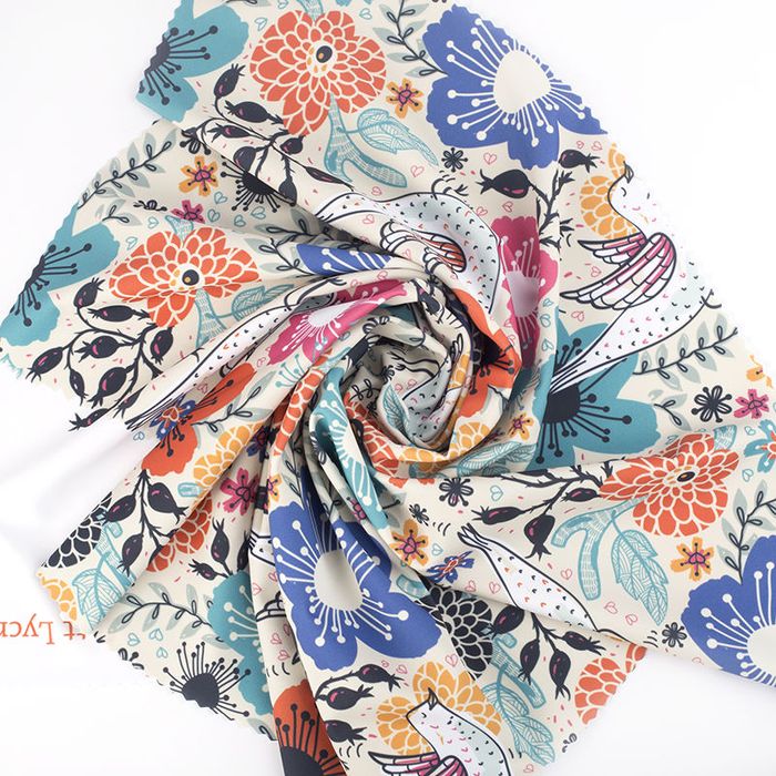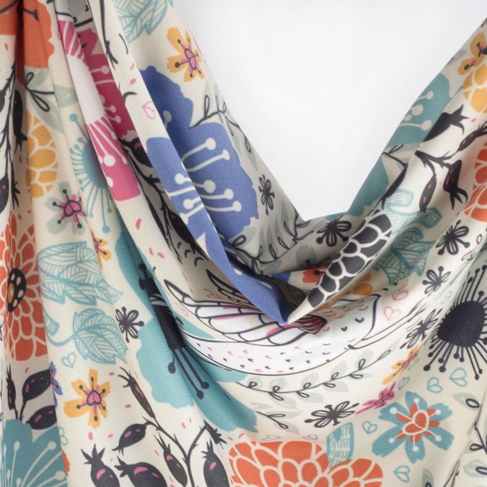 Beachte bei der Auswahl der Größe auch, dass dein Stoffstück beim Bedrucken mindestens 2% einlaufen kann. Dickere und schwerere Stoffe benötigen breitere Umschläge, um den Saum vernähen zu können, und deshalb auch eine größere Saumzugabe. Der Saum von Seide und anderen leichten Stoffen ist an den vertikalen Schnittkanten (in Richtung der Kettfäden) gerade und an den horizontalen Schnittkanten (in Richtung der Schussfäden) etwas gewellt.