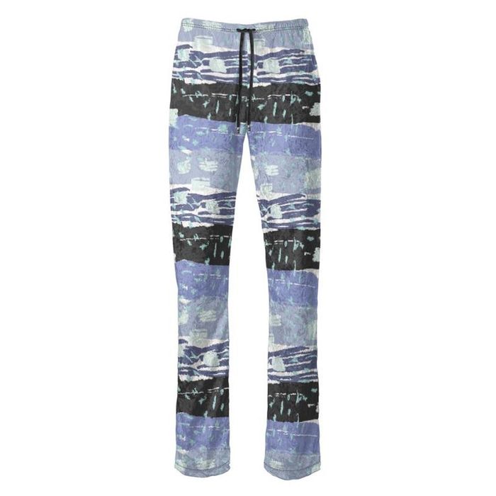 Der Stoff bestimmt den Look Ihrer individuellen Hose: Knautschvelours mit seinem weichen Flor sorgt für angenehme Wärme. Wir drucken Ihr Design mit umweltfreundlichen Tinten tief in die Fasern, sodass die Motive auch nach vielen Wäschen ihre leuchtenden Farben behalten. Anschließend schneiden unsere Schneider die Paneele präzise zu und nähen sie zu Ihrem Unikat zusammen – maßgefertigt mit viel Liebe zum Detail.
