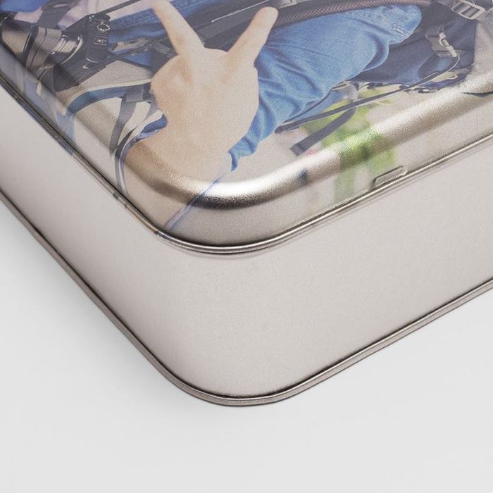 Mit schimmerndem Finish und abgerundeten Rändern ist dieser Behälter wirklich etwas ganz Besonderes. Das Designen deines eigenen Geschenks ist ein echtes Kinderspiel: Lade deine Bilder mit Hilfe unseres Gestaltungsprogramms hoch und platziere sie ganz nach deinem Geschmack auf dem Deckel. Als Hinweis, wo sich die abgerundeten Ränder befinden, wird dir eine grün-gestrichelte Linie angezeigt. Wir empfehlen alle wichtigen Details innerhalb der Linie abzulegen, damit sie nicht aus Versehen auf den Rand des Deckels gedruckt werden.