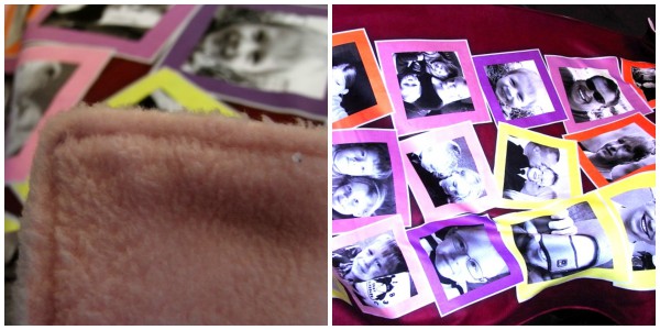 Detailaufnahme Kuscheldecke mit Fotos und Ansicht der ganzen DeckeUnd könnt ihr sehen, wer da unter der Decke steckt?