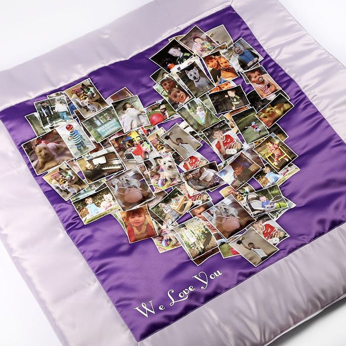 Dein Federbett wird nicht nur auf Bestellung bedruckt, sondern vollkommen neu für dich angefertigt. Nutze unser Gestaltungsprogramm, um die Vorderseite der Decke mit einem oder mehreren Fotos zu gestalten und die Farbe des Rahmens und der Rückseite auszuwählen. Sobald wir deine Bestellung erhalten haben, beginnen wir mit der Herstellung. Zunächst drucken wir deine Bilder auf Bahnen des luxuriösen Duchesse Satin. Wir nutzen ein spezielles Verfahren, bei dem die Druckerfarben tief in den Fasern verankert werden. Das so entstehende Bild ist langlebig und hat wegen des Satins ein edles, schimmerndes Finish. Der bedruckte Stoff wird zurechtgeschnitten und dann in Handarbeit mit Satin in der Farbe deiner Wahl zum Deckenbezug gefertigt. Die Ecken sind im Patchwork-Stil diagonal vernäht. Wir füllen den Bezug mit üppigem Futter, das dich auch in den kältesten Nächten warmhalten wird.