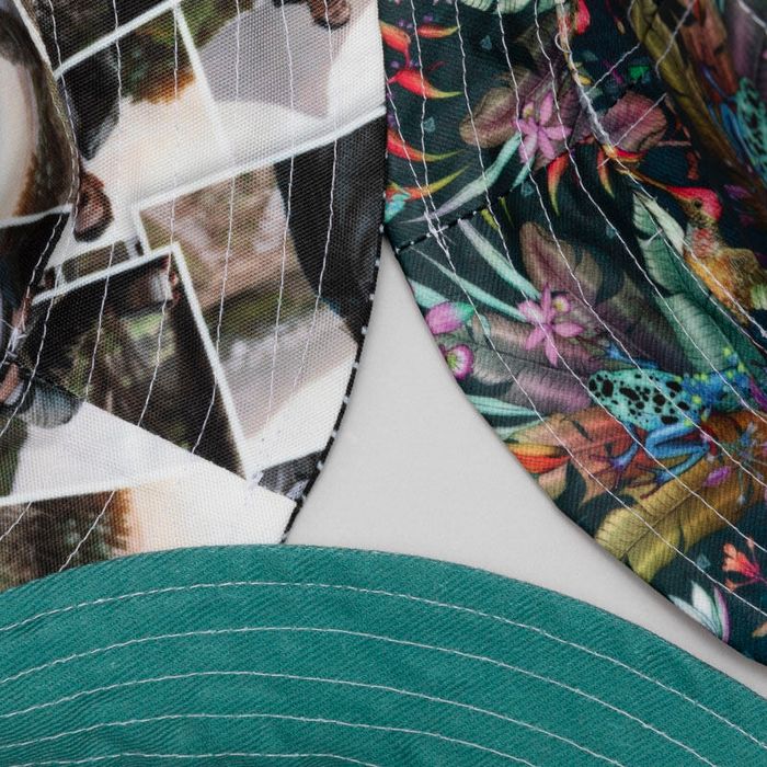 Insgesamt stehen dir sechs verschiedene Flächen zum Fischerhut Bedrucken zur Verfügung: Die obere Fläche, die äußere Fläche und die Krempe. Da es sich um einen wendbaren Fischerhut handelt, gestaltest du die Innen- und die Außenseite. Um die einzelnen Teile miteinander zu vernähen haben wir einen sogenannten Beschnitt hinzugefügt. Hierbei handelt es sich den Bereich, an dem zwei verschiedene Stoffteile miteinander vernäht werden oder aus dem ein Saum gefertigt wird. Der Bereich wird dir in unserem Gestaltungsprogramm als rotkarierte Fläche angezeigt und sollte mit deinem Design ausgefüllt werden, um weiße Ränder zu vermeiden. Bitte platziere hier jedoch keine wichtigen Motive, wie Texte oder Gesichter, da diese beim Vernähen abgeschnitten werden können.