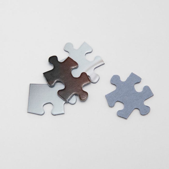 Du entscheidest zwischen einem luxuriösen Satinbeutel oder einer silbernen Metalldose. Auf Wunsch wird der Deckel der Dose mit dem gleichen Motiv wie das Puzzle bedruckt – Flächen, die in deiner Datei weiß sind, erhalten dabei einen stilvollen Silberglanz.