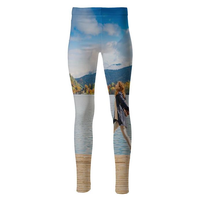 Wenn du deine Leggins selber gestalten möchtest, kannst du insgesamt vier Flächen der High-Waist Leggings mit deinen Bildern verzieren. Die Vorder- und die Rückseite des linken und des rechten Beins können deiner Wahl nach mit denselben oder mit verschiedenen Fotos bedruckt werden. Wie wäre es zum Beispiel mit einem interessanten Harlekin-Look? Nutze hierfür dieselben Motive oder Muster für die Vorderseite des rechten und die Rückseite des linken Hosenbeins. Die Vorderseite des linken und die Rückseite des rechten Beins werden mit kontrastierenden Bildern oder Farben versehen.