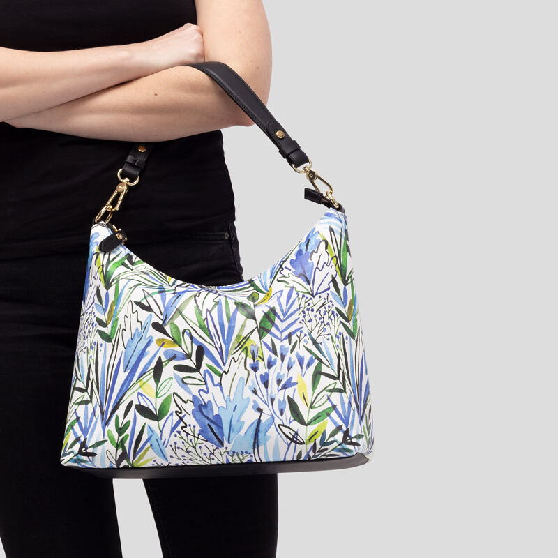 Hier kannst du eine Hobo Bag bedrucken lassen, die auf Bestellung in Handarbeit für dich hergestellt wird.