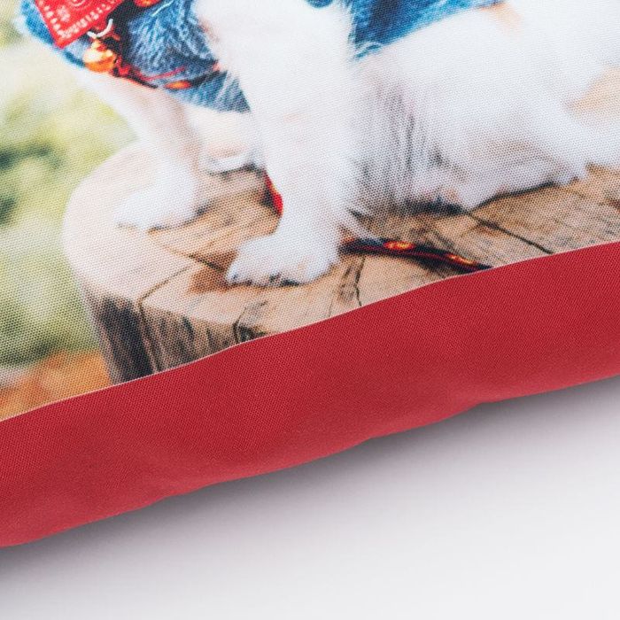 Dein Hundekissen mit Foto wird in Handarbeit vor Ort hergestellt, da wir auch deinem vierbeinigen Freund nur die beste Qualität bieten möchten. Nachdem du dein Design abgeschickt hast, wird der Canvas-Stoff mit dem Foto auf der Oberseite und dem Muster für den Rand bedruckt. Unsere Print-Profis nutzen nur die neueste Technik in Sachen Druck: Mit Hilfe eines speziellen Verfahrens verankern wir die Farben des Motivs tief in den Fasern des Canvas-Stoffes und erhalten so ein Bild, das nicht nur mit hervorragender Qualität überzeugt, sondern auch langlebig ist. Der Stoff wird erst nach Abschluss des Druckvorganges zugeschnitten, da wir sichergehen wollen, dass alle Ränder und Nähte mit dem Motiv bedeckt sind. Nichts wird dem Zufall überlassen!