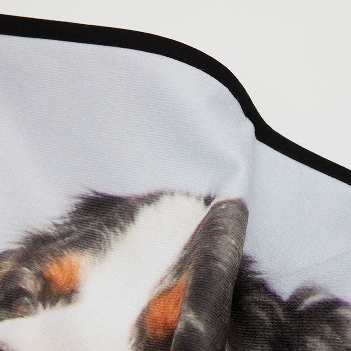 Motiv-Fotocollagen, bunte Muster oder ein schlichtes Logo: Auf der Mikrofaser-Seite kommt jedes Design gestochen scharf zur Geltung. Du kannst dein Hundetuch mit eigenem Motiv drucken oder einen witzigen Spruch hinzufügen, damit jeder sofort weiss, wer hier getrocknet wird.