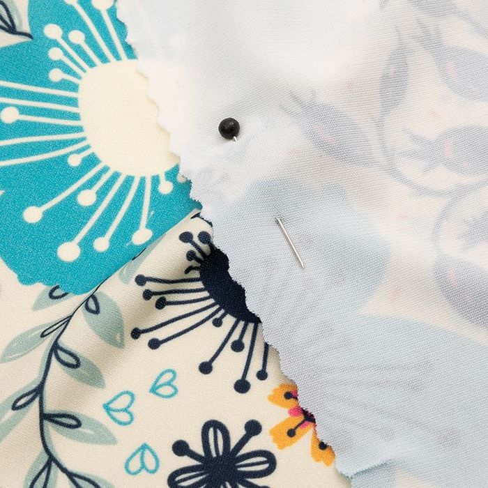Beachte bei der Auswahl der Größe auch, dass dein Stoffstück beim Bedrucken mindestens 2% einlaufen kann. Dickere und schwerere Stoffe benötigen breitere Umschläge, um den Saum vernähen zu können, und deshalb auch eine größere Saumzugabe. Der Saum von Seide und anderen leichten Stoffen ist an den vertikalen Schnittkanten (in Richtung der Kettfäden) gerade und an den horizontalen Schnittkanten (in Richtung der Schussfäden) etwas gewellt.