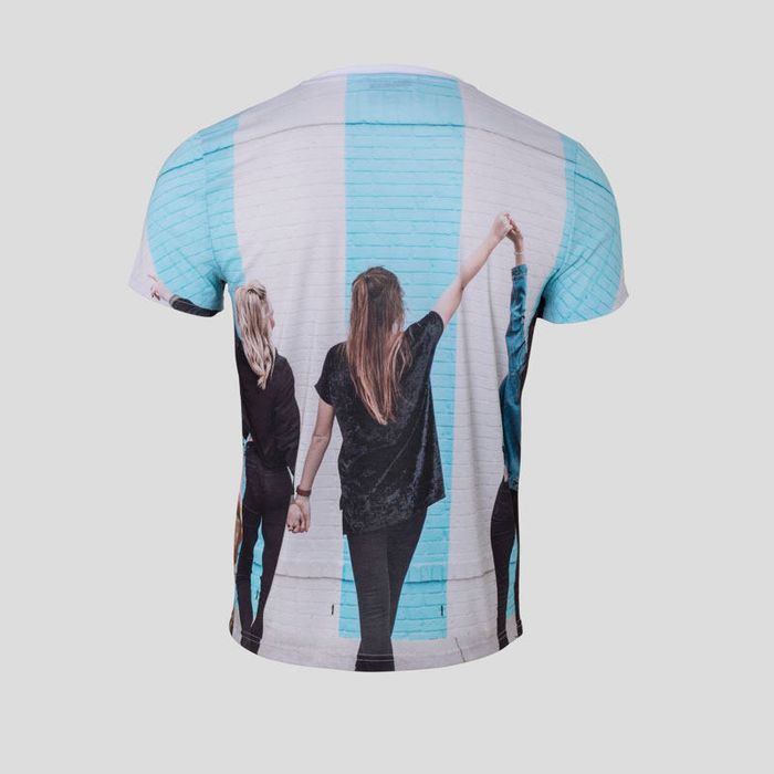 Wir raten davon ab, Designelemente von vorne nach hinten zu übertragen, wie z. B. horizontale Streifen und Schulternähte. Wir versuchen, alle offensichtlich fortlaufenden Teile Ihres Designs auszurichten, können jedoch keine 100%ige Registrierung garantieren.