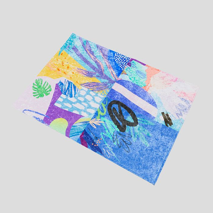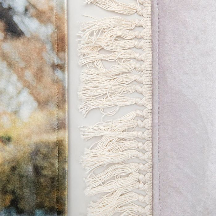 Dieser Teppich wird speziell für dich in sorgfältiger Handarbeit angefertigt. Wir drucken deine Fotos mit Hilfe eines besonderen Verfahrens auf Bahnen des Samtstoffes deiner Wahl. Die Farben werden tief in den Stofffasern verankert und machen den Print so scharf und unglaublich originalgetreu. Der Schimmer des Stoffes verleiht deinen Designs ein edles Finish, da er durch die Farben hindurchscheint. Durch die Art und Weise, wie der Teppich bedruckt wird, kann der Artikel nach Erhalt etwas riechen. Nach wenigen Tagen an der Luft wird dieser Geruch jedoch verschwinden. Das Material wird in Handarbeit zugeschnitten und dann mit einem Jutegitter und einer rutschfesten Latexmatte vernäht. Wenn du die Baumwollfransen ausgewählt hast, werden diese als letztes an den beiden kürzesten Seiten des Teppichs befestigt. Bei Bedarf können wir die Fransen auch nur an einer der kürzeren Seiten befestigen.