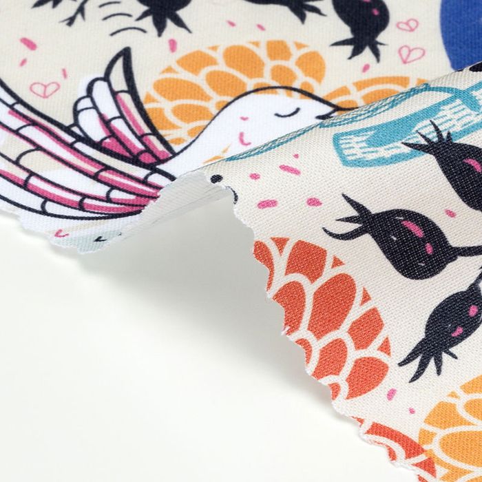 Deine Baumwollnessel wird vor Ort in unserem Studio bedruckt. Wir nutzen nur die neueste Technik, um dir die beste Qualität zu garantieren. Durch ein spezielles Verfahren werden die Farbpigmente mit den Baumwollfasern verbunden. Dein Design ist also nicht nur auf der Oberfläche zu sehen, sondern tief im Stoff verankert. Das Ergebnis ist langlebig, farbecht und originalgetreu. Da es sich um einen natürlichen Stoff handelt, werden Farben etwas blasser abgebildet. Erhöhe die Sättigung deines Designs, um dem entgegenzuwirken. Die unbehandelten Baumwollfasern verleihen dem Druck außerdem einen authentischen warmen Unterton.