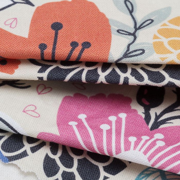 Wir bieten dir die Wahl zwischen vier verschiedenen Säumen für dein bedrucktes Stoffstück: Wähle zwischen Säumen mit schwarzem oder weißem Garn oder einfachen Schnittlinien, je nachdem wozu du deinen Print verwenden möchtest.