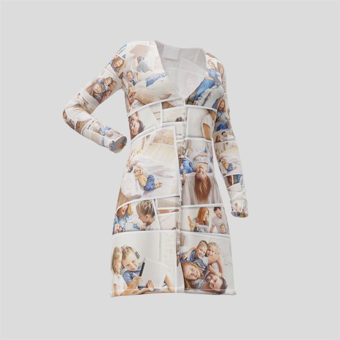 Dieses enganliegende Kleid mit Knöpfen und langen Ärmeln wird ganz nach deinen Wünschen mit Fotos, Mustern... Mehr
