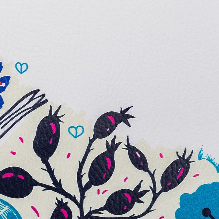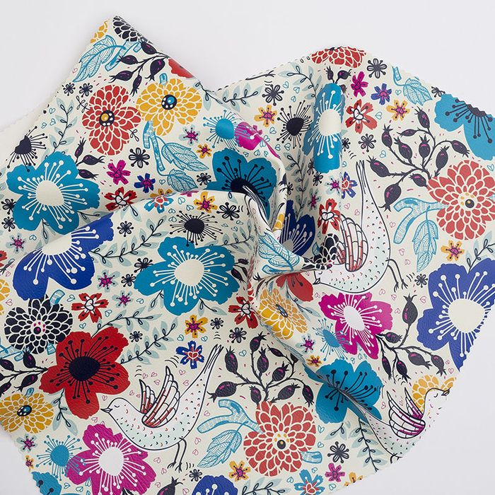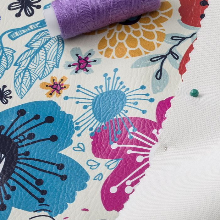 So entsteht ein langlebiges und farbenfrohes Ergebnis auf weißem Hintergrund. Das Material enthält keine Tierprodukte und wird mit veganen Farben bedruckt, weshalb dein bedrucktes Kunstleder selbst auch 100% vegan ist.