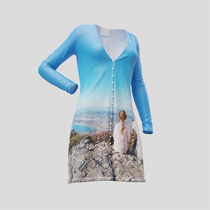 Ein bedruckter langer Cardigan – jetzt personalisierter Cardigan online kaufen und vom Homeoffice bis zum Abendessen stilvoll auftreten.