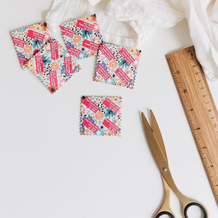 Unsere Mitarbeiter schneiden die Bahnen in Handarbeit zu 7 x 7 cm bzw. 5 x 5 cm großen Quadraten zurecht. Die Proben haben die perfekte Größe für die Handtasche, solltest du sie deinen Freunden oder Kunden zeigen wollen. In der praktischen Schachtel aus Pappe sind sie außerdem sicher verstaut und können ohne Probleme im Nähkästchen oder in der Schreibtischschublade aufbewahrt werden.