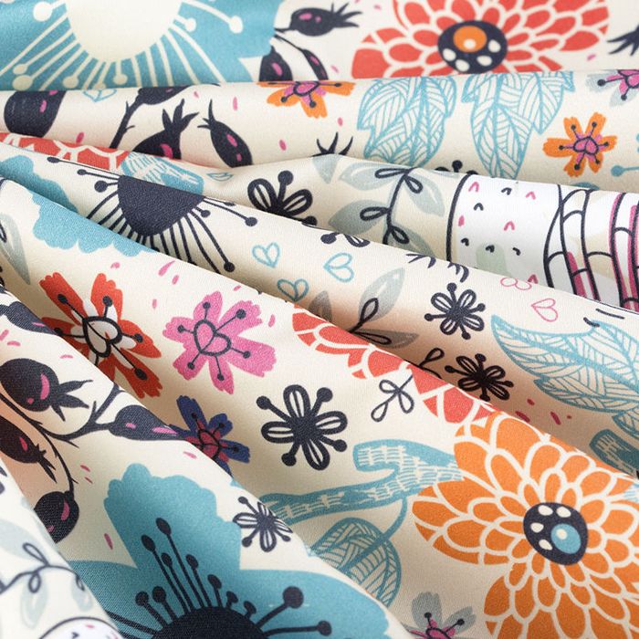 Bio Baumwoll-Satin mit glänzender Satin-Vorderseite und matter Rückseite. Gestochen scharfe Druckqualität und breites Farbspektrum mit satten Farben. Aus biologischem Baumwollgarn gewebt. Zur Herstellung von Röcken, Hosen, Kleidern, leichten Jacken und Arbeitskleidung oder leichten Polster- und Küchentextilien.