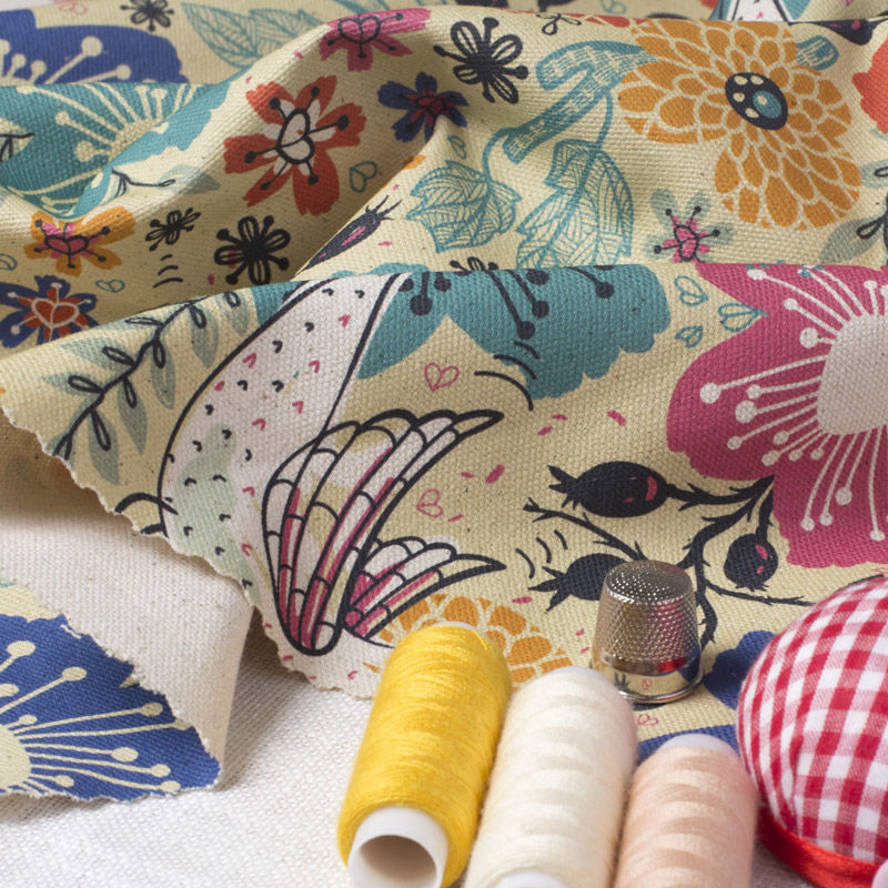 Schwerer Kettsatin, ähnlich wie Canvas. Robustes Material mit tollen Druckdetails und einer breitem, leuchtenden und definiertem Farbspektrum. Geeignet für schwere Kleidungsstücke wie Jacken, Hosen und Jumpsuits. Ideal auch für Polstermöbel.