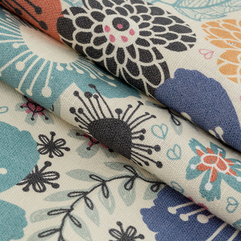 Pigmentdruck. 100% natürliche Baumwolle in Atlas- oder Satinbindung. Glatte und kühle Oberfläche. Körnige, matte Rückseite. Leicht entsättigte Farben und gestärktes Finish.