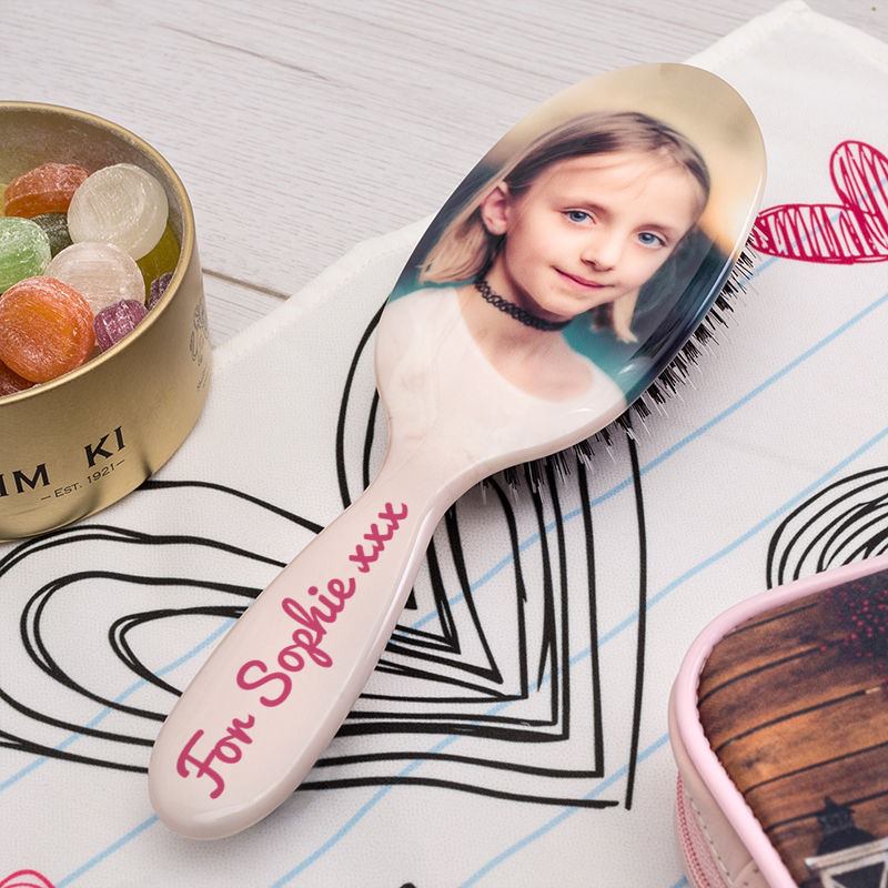 Beidseitig bedruckt und individuell gestaltet, ist diese personalisierte Haarbürste ein glänzendes Geschenk für Jung und Alt.