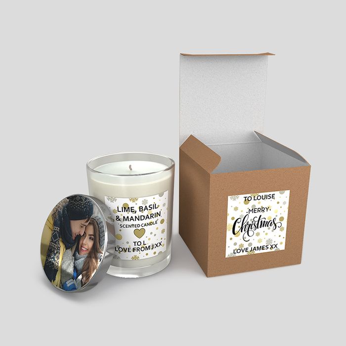 Deckel, Glasetikett und Geschenkbox können einzeln gestaltet werden. Achte darauf, dass Fotos oder Schriftzüge klar erkennbar bleiben, da die bedruckbare Fläche des kerzenglases personalisiert recht klein ist.