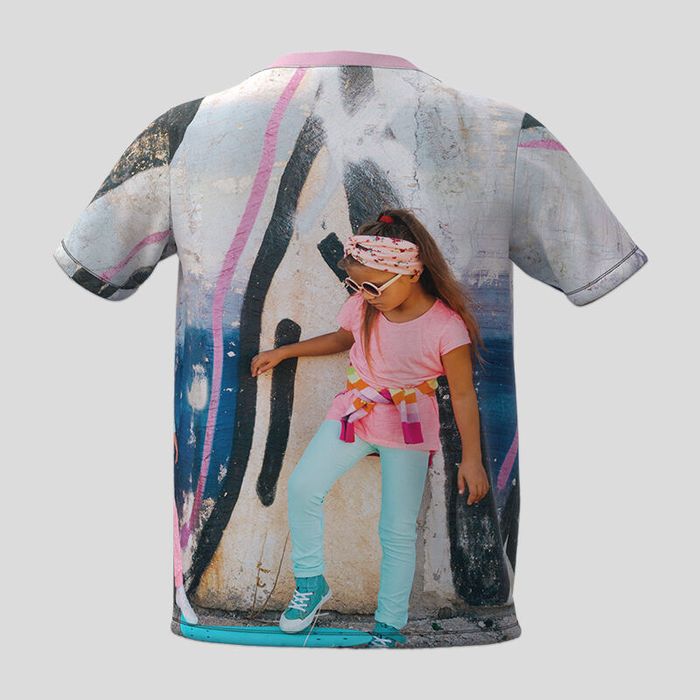 Wenn es um die Designfreiheit geht, kommt nichts an unsere hochwertig bedruckten Kinder T-Shirts heran. Du kannst jedes Teil einzeln gestalten, sodass deiner Kreativität keine Grenzen gesetzt sind. Verwende so viele verschiedene Fotos, Designs und Texte, wie du willst, um deine personalisierten Kinder T-Shirts zu einem Meisterwerk zu machen. Der Jerseystoff bringt deine Fotos in leuchtenden kräftigen Farben zur Geltung, die auch im Laufe der Zeit nicht ausbleichen. Gleichzeitig behält der Stoff seine ursprüngliche Weichheit, wodurch sich jedes T-Shirt besonders angenehm und bequem tragen lässt.