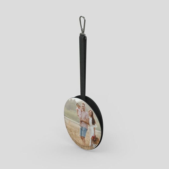 Vom ersten Moment an spürst du die luxuriöse Haptik des echten Nappaleders. Dein Motiv wird in brillanten Farben auf glattes oder strukturiertes Leder gedruckt, danach schneiden und nähen unsere Fachleute jedes Teil von Hand. Der Rand wird sorgfältig lackiert, bevor der kristallklare Acrylspiegel eingesetzt wird. Wähle zwischen einer praktischen Lederlasche oder einem 11 cm langen Lederband, damit dein Spiegel nicht in den Tiefen deiner Tasche verschwindet. So entsteht ein Leder Kompakt Spiegel personalisiert für den Alltag.