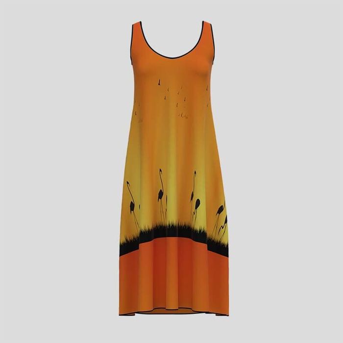 Du hast die Wahl: femininer V-Ausschnitt mit filigranen Spaghettiträgern oder klassischer Rundhalsausschnitt. Beide Varianten präsentieren einen tiefen Rücken, der deinem Design zusätzlichen Wow-Effekt bietet. Wenn du ein Damen ärmelloses Midikleid bedrucken lassen möchtest, laden wir dein Motiv hochauflösend auf den Stoff, bevor unsere Schneider*innen es per Hand mit schwarzen oder weißen Nähten vernähen.