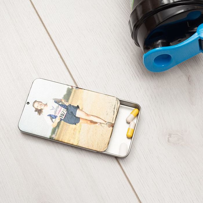 Gestalte deine personalisierte Pillendose mit Foto, Namen oder Spruch. Der robuste Metallschuber schließt... Mehr