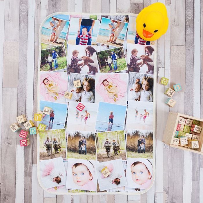 Auch zur Taufe kannst du eine Wickelmatte bedrucken und so dem Taufkind ein persönliches Geschenk bereiten. Gestalte die Matte mit Fotos der ersten Monate des Kleinen und dem Geburtsdatum. Mama und Papa wirst du so ganz sicher ein Lächeln aufs Gesicht zaubern!