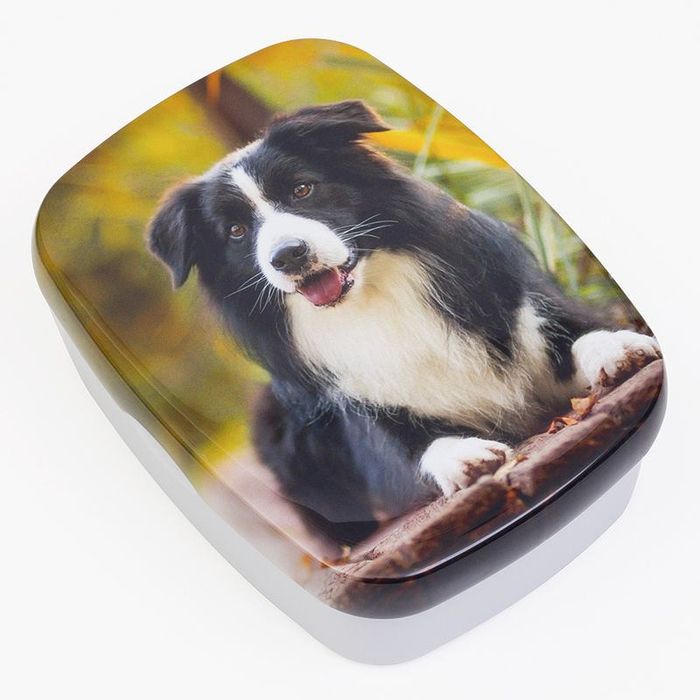 Unsere Druckexpert*innen veredeln jede Lunchbox in Handarbeit. Beim 3D-Druckverfahren dringen die Farben tief in die Oberfläche ein und umschließen auch den gewölbten Rand für einen nahtlosen Look. Das Ergebnis: ein langlebiger, glänzender Fotodruck, der Absplittern oder Verblassen widersteht.