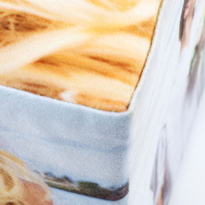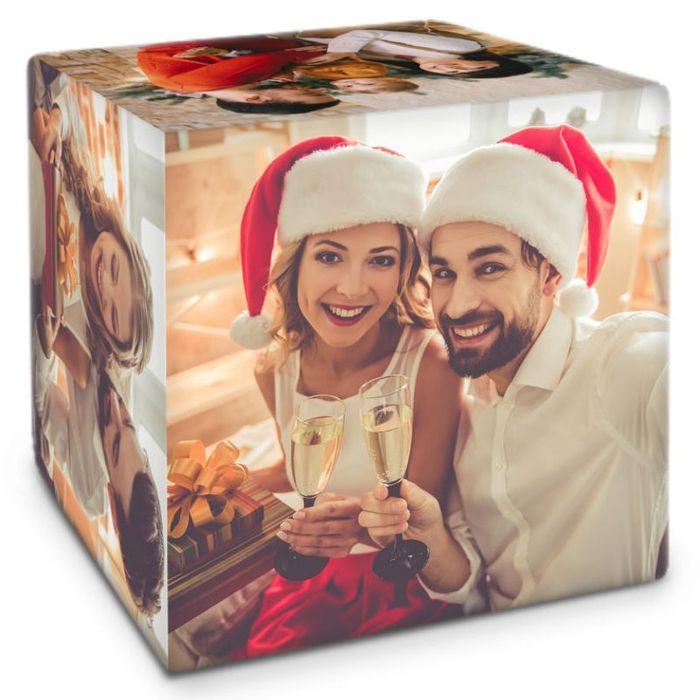 Dieser fantastische Fotowürfel ist mit weichem Fleece bezogen und überzeugt als Spielzeug, Deko-Element sowie als Möbelstück.