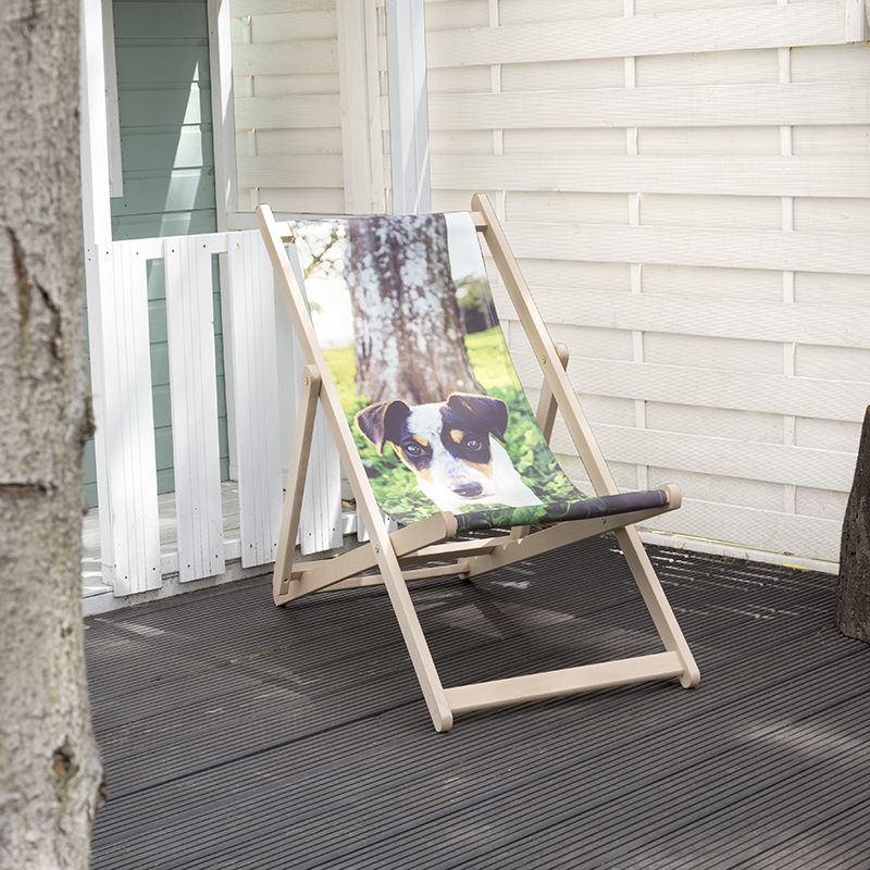 Mache es dir im Garten auf deinem selbst gestaltetem Liegestuhl mit Foto bequem.