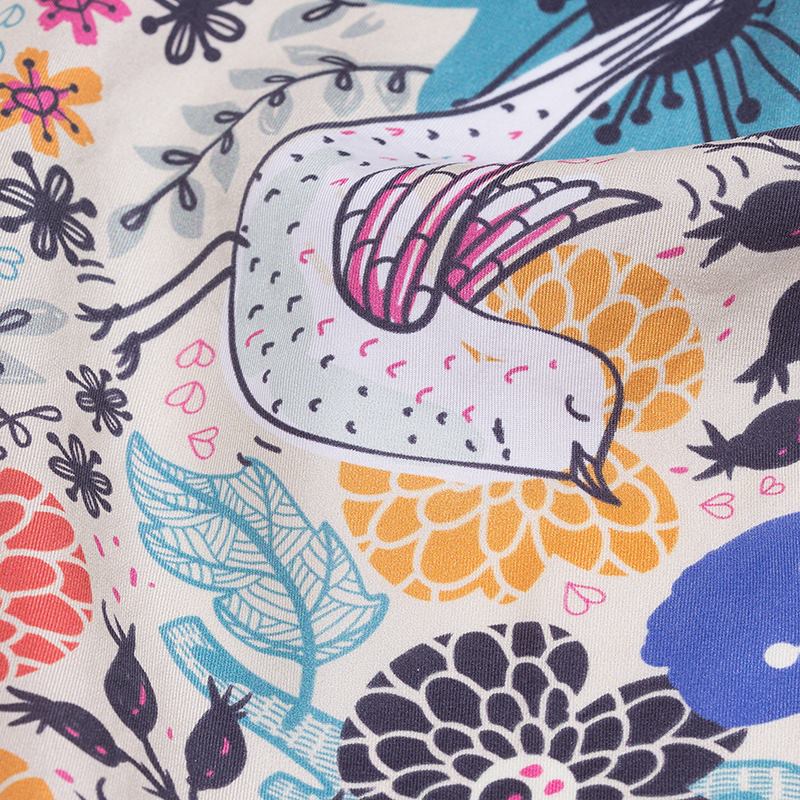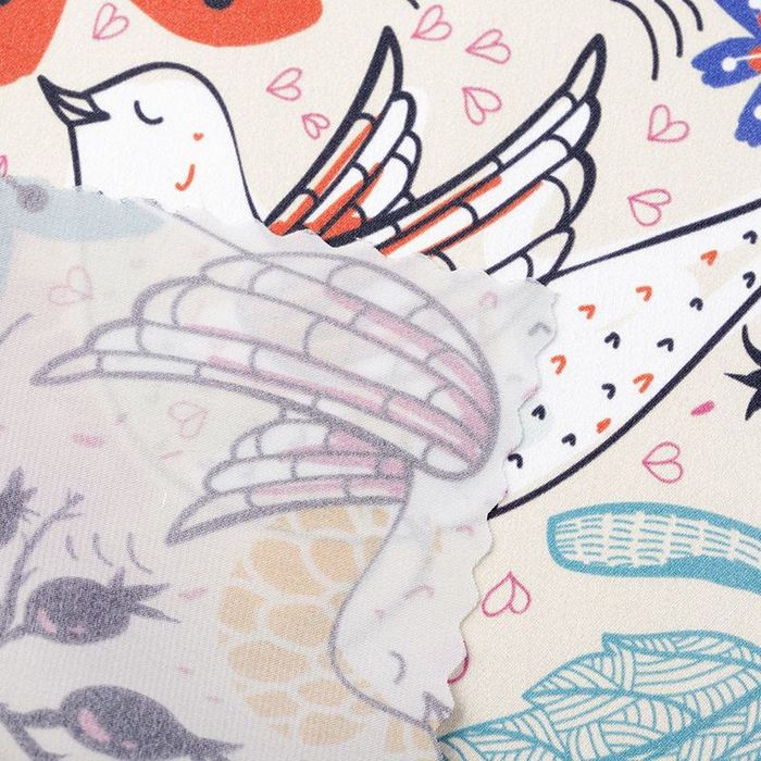 Seide ist allgemein ein guter Träger für Farbe, mit Hilfe von speziellen Techniken kann jedoch eine einfach atemberaubende Bildqualität erzielt werden. Unsere Print-Experten nutzen nur die neuesten digitalen Verfahren in Sachen Druck und sorgen so für wahre Kunstwerke. Auch unsere Kunstseiden bieten eine ideale Grundlage für farbige Motive, denn wie alle Kunstfasern überzeugen sie mit kräftigen und satten Farben, die zudem einfacher zu pflegen sind, als ein Druck auf echter Seide.