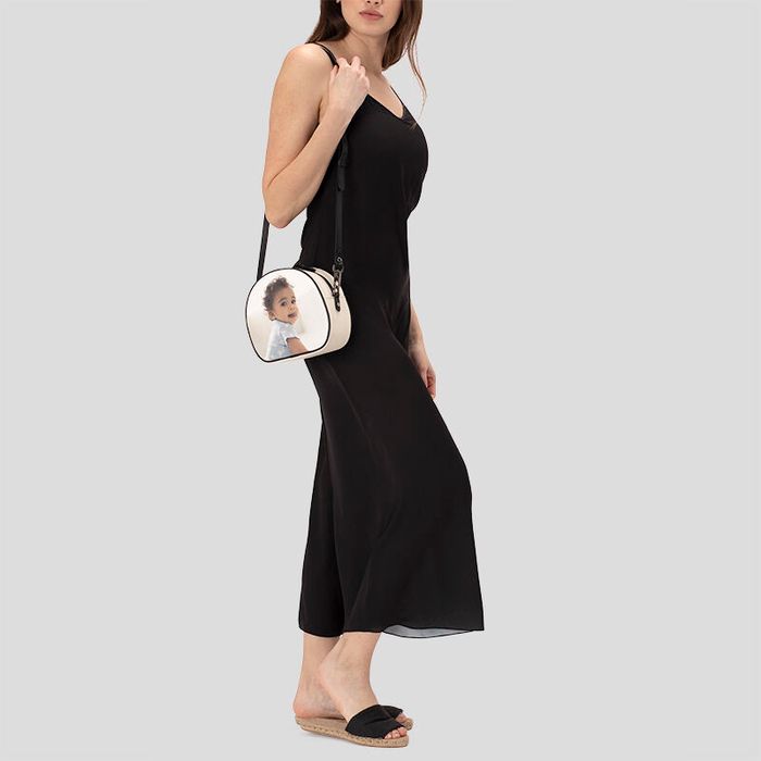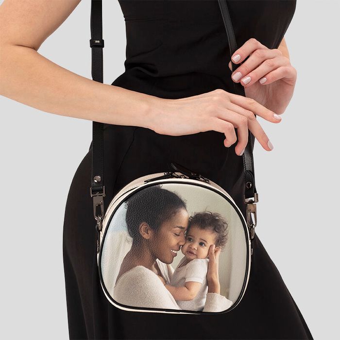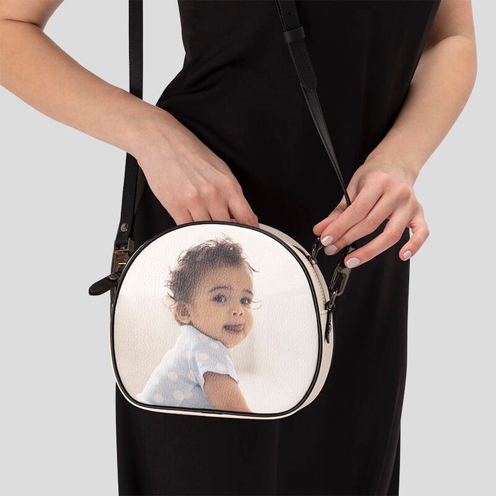 Lass eine luxuriöse runde Ledertasche personalisieren mit deinen schönsten Erinnerungen, in der du alles W... Mehr