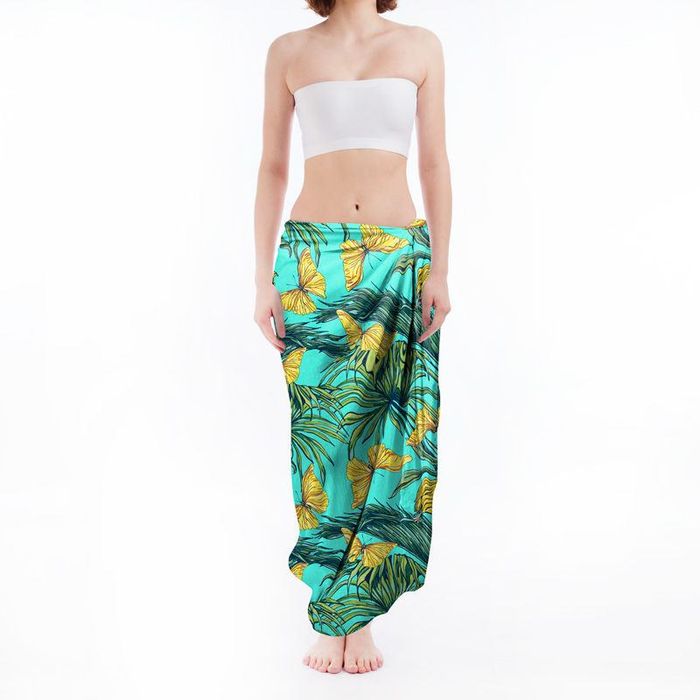 Der Sarong kann außerdem aus federleichtem Chiffon gefertigt werden. Dieser Stoff ist transparent und wird besonders in Lagen für einzigartige Farben und Muster sorgen. Aufgrund seiner feinen netzartigen Natur eignen sich Motive mit satten Farben und klaren Linien für die Gestaltung von Chiffon am besten. Das Material beeindruckt mit besonders sanftem Fall, der deine Kurven wunderbar akzentuieren wird.