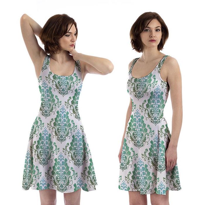 Jedes Kleid wird erst nach Eingang deiner Bestellung in sorgfältiger Handarbeit gefertigt. Zunächst drucken wir dein Motiv – ganz gleich, ob Foto, Grafik oder Muster – mit wasserbasierten Farben tief in den Stoff. Anschließend schneiden unsere Schneider*innen die einzelnen Teile präzise zu und nähen sie zu deinem neuen Lieblingsstück zusammen. Das Ergebnis: ein leicht ausgestelltes Skaterkleid, das deine Taille betont und locker über die Hüften fällt.