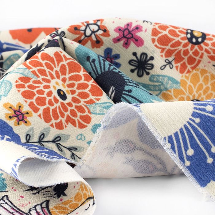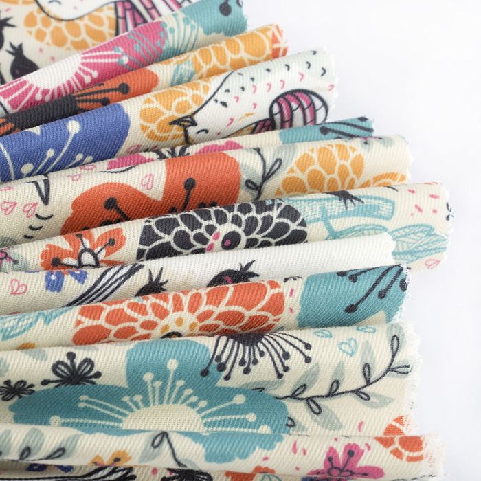 Für Stoffe aus Naturfasern verwenden wir einen speziellen Drucker, der die Farben direkt auf die Stoffbahnen druckt. Dieser sogenannte Textil-Direktdruck überzeugt mit langlebigem, scharfem Ergebnis und satten Farben. Die Farbpigmente auf Wasserbasis sind außerdem umweltfreundlich.