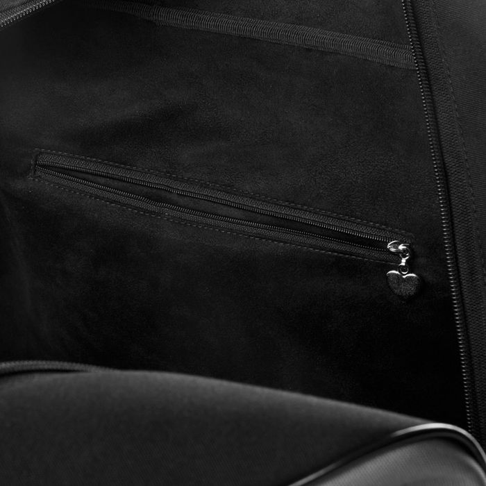 Eine Innentasche mit Reißverschluss und eine offene Tasche auf der gegenüberliegenden Seite. Innenfutter aus feuersicherem und wasserabweisenden Faux Suede. Bei der Ledertasche besteht die innere Verstärkung aus Leder, bei der Version aus Canvas besteht sie aus Kunstlackleder.