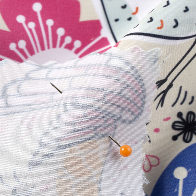 Bevor wir mit der Produktion deines Stoffstückes beginnen, prüfen unsere Techniker das Design, um sicher zu gehen, dass es auch wie gewünscht in die Tat umgesetzt werden kann. Wenn alles in Ordnung ist, wird die Textilie mit einem von zwei Verfahren bedruckt. Stoffe aus Naturfasern werden in einen speziellen Drucker gespannt, wo sie direkt mit deinem Design bedruckt werden. Die Farben auf Wasserbasis verbinden sich mit den Fasern und sorgen für ein scharfes, kräftiges Ergebnis. Künstliche Stoffe hingegen werden mit Hilfe eines sogenannten Sublimationsverfahrens bedruckt, bei dem deine Motive zuerst auf spezielles Transferpapier gedruckt werden. Den Stoff geben wir in eine Hitzepresse und decken ihn mit dem Transferpapier ab. Bei hoher Temperatur verdampfen die Farben und verbinden sich mit den Stofffasern. Auch dieses Verfahren sorgt für einen langlebigen und originalgetreuen Druck.