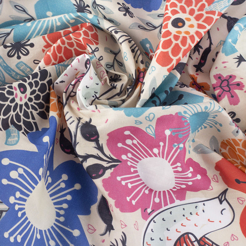 Pigmentdruck auf 100% Baumwolle. Federleicht, seidig glatt und matt. Baumwollbatist ohne Stretch. Lichtdurchlässig. Druckergebnis ist aufgrund Pigmentdruck leicht entsättigt.