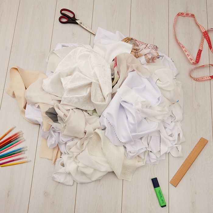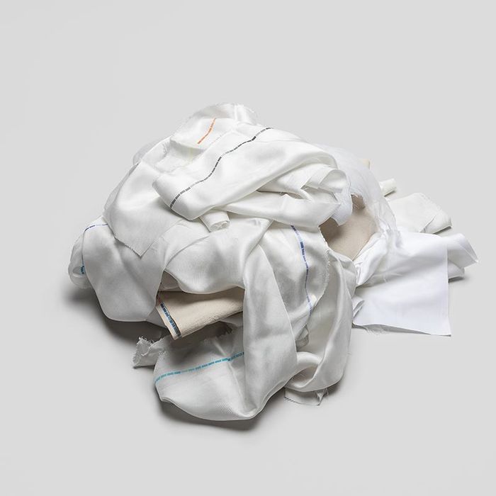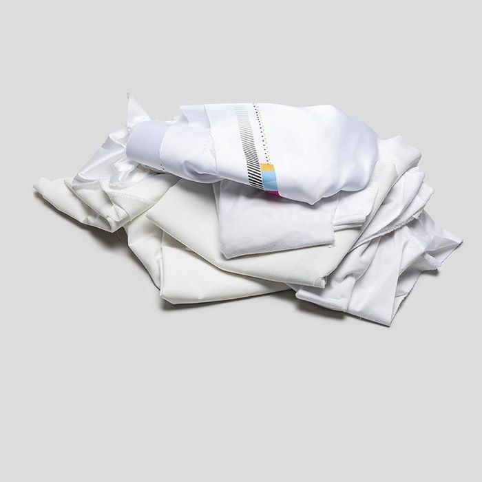 Farben: Die meisten Stoffreste werden weiß oder beige sein, aber sie können auch hier und da einen Farbtupfer oder einen Aufdruck mit Text oder Strichcode haben.
