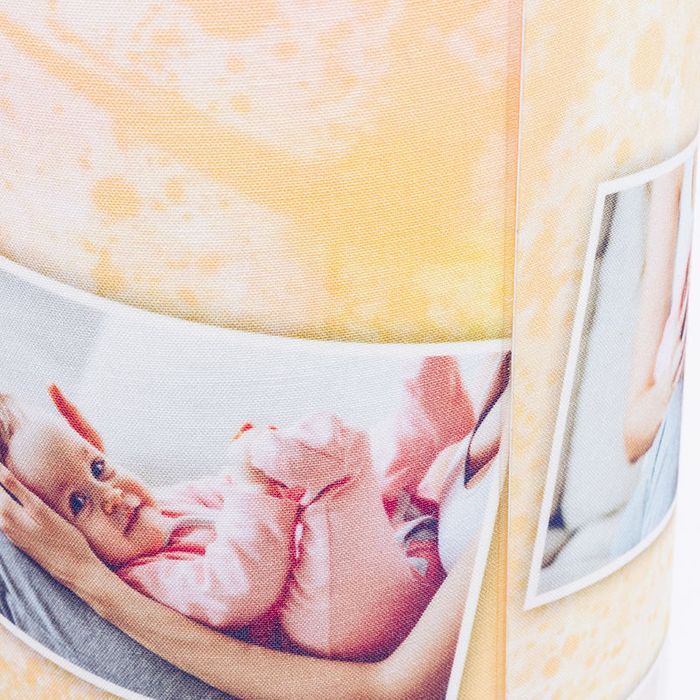 Da der Lampenschirm höher als breit ist, funktionieren Motive im Hochformat besonders gut. Du kannst eine große Aufnahme wählen oder eine Collage erstellen – ideal, um viele Erinnerungen auf einmal zu zeigen. Für Kinder entsteht so eine personalisierte Nachttischlampe mit niedlichen Tiermotiven, im Büro motiviert dich eine eigene Schreibtischlampe mit inspirierendem Zitat.