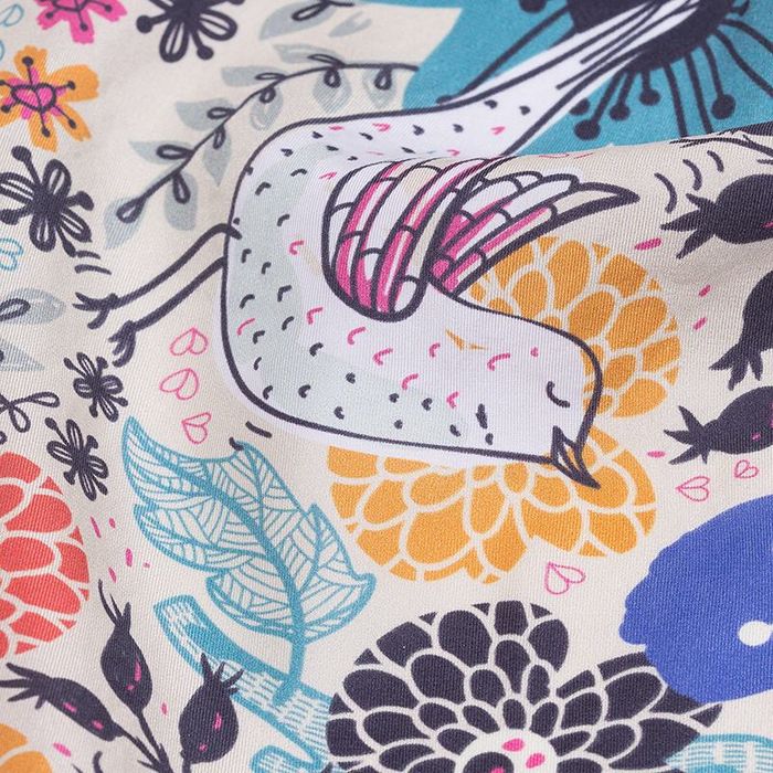Obwohl wir stets daran arbeiten unsere Farbprofile zu verbessern, kann es zu leichten Unterschieden zwischen verschiedenen Bestellungen kommen. Wenn sie vorkommen, sind diese Unterschiede jedoch sehr fein. Es handelt sich also nicht um Unterschiede im Bereich von beispielsweise Rot und Orange, sondern einem helleren Rot und einem etwas dunkleren Rot. Das gleiche Motiv kann auf einer Auswahl an verschiedenen Stoffen verschieden ausfallen. Bilder auf Stoffen mit Polyesteranteil sind stets satter und kräftiger als auf natürlichen Stoffen oder Bio-Stoffen, da natürliche Fasern nur einen bestimmten Anteil an Farbe aufnehmen können.
