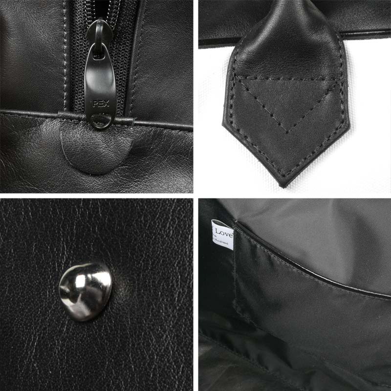 Details: Innenfutter aus feuerfestem Faux Suede Stoff. Verstärkter Boden aus Leder (Ledertasche) oder aus künstlichem Lackleder (Canvastasche). 1 Innentasche mit Reißverschluss auf einer und eine offene Innentasche auf der anderen Seite.