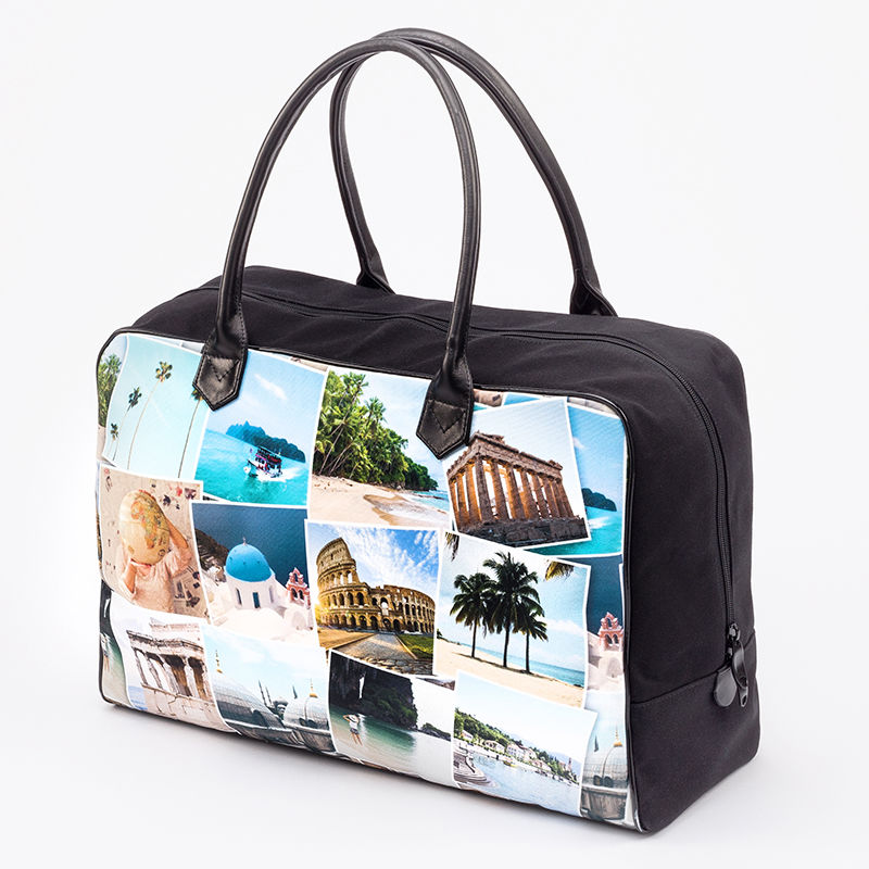 Diese tollen Taschen sind für Damen und auch Herren geeignet. Sie haben die perfekte Größe solltest du bei jemanden übernachten wollen oder eine Städtereise über das Wochenende geplant haben. Die kleine Version ist eine unglaublich geräumige Handasche, während die große Tasche besser für ein langes Wochenende ist. Lasse dich beim Designen vom Nutzen der Tasche inspirieren: Wenn du und dein Schatz eine kurze Reise geplant habt, dann entwerfe passende Weekender für euch beide, bedruckt mit Fotos eurer Hochzeit. Dein Mann muss häufig für die Arbeit herumreisen? Gestalte die Vorder- und Rückseite der Tasche mit schönen Fotos der gesamten Familie. So könnt ihr euch immer nahe sein, selbst wenn ihr weit voneinander entfernt seid.