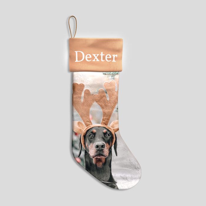 Diese personalisierten Weihnachtsstrümpfe haben die Form einer Socke, also bedenke dies bei der Gestaltung. Du kannst die Vorder- und die Rückseite, sowie die Oberseite des Strumpfes ganz nach deinen Wünschen mit denselben oder verschiedenen Fotos oder Collagen verzieren und auch einen Text dazu wählen. Wir empfehlen Namen oder Initialen, um sicher zu gehen, dass die Aufschrift auch leicht gelesen werden kann. Personalisierte Weihnachtsstiefel sind eine schöne Idee für Kinder: Wie wäre es mit ein paar Weihnachtsstrümpfe mit Kinderfotos für deine Nichte und deinen Neffen? Dank dem Weihnachtsstrumpf ist klar, wem welche Geschenke gehören: Perfekt für Kinder, die noch nicht lesen können. Weihnachten ist nicht nur das Fest der Liebe, sondern mit Weihnachtsmann, Rudolph und Co. auch das Lieblingsfest vieler Kinder und mit einem von dir gestalteten Weihnachtsstrumpf werden die Kleinen Star der Show. Gestalte doch eine Collage mit den schönsten Fotos der letzten Jahre um an Weihnachten in den Erinnerungen schwelgen zu können. Auch Haustiere gehören natürlich zur Familie und nun kannst du einen Weihnachtsstiefel für deinen geliebten Wauwau erstellen, auf dem das Gesicht deines Lieblings prangt.